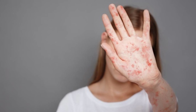 Це гостре вірусне захворювання, яке передається повітряно-крапельним шляхом – тобто просто при розмові, чханні або кашлі хворої людини. Симптоми включають високу температуру, сухий кашель, нежить, почервоніння очей і характерний висип на тілі.